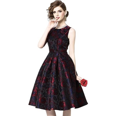 Women's Vintage Tea Dress Sleeveless 1950's Floral Garden Rockabilly Swing Prom Cocktail Party Dress