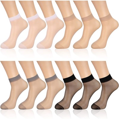 12 Pairs Sheer Ankle Socks Thin Nylon Transparent Ankle High Hosiery Socks Short Dress Stockings